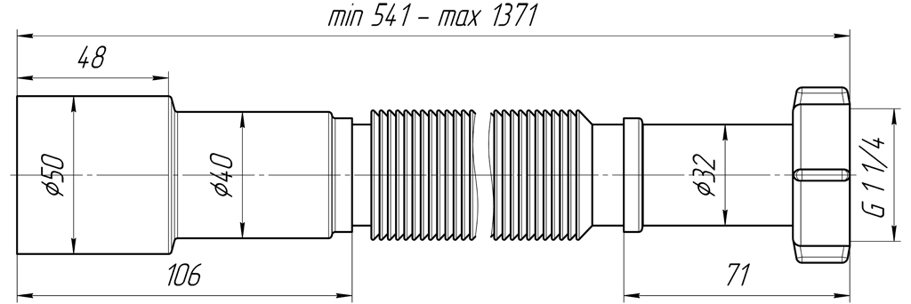 Гофра труба K216 32 * 40/50 удлиненнаяХарактеристики