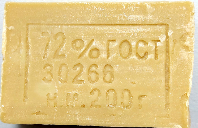 Мыло хозяйственное 72% 200 г. предназначено для санитарно-гигиенических и хозяйственных целей — мытья рук, посуды, стирки изделий из различных тканей. Хозяйственное твёрдое мыло не обладает общетоксическим, раздражающим, аллергизирующим действием. Обладает обеззараживающим эффектом.Вес 200г