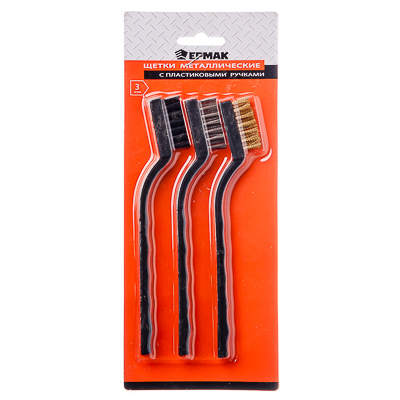 Набор металл. щеток 3шт. мал. пласт ручки ЕРМАК