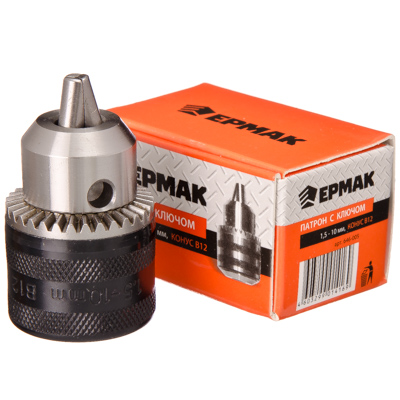 Патрон с ключом 1,5-10мм, конус В12 ЕРМАК