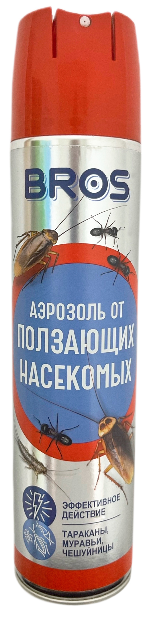 BROS Аэрозоль от ползающих насекомых 400млДля борьбы с ползающими насекомыми в помещениях: с тараканами, пруссаками, муравьями, клопами, щетинохвостками и др.