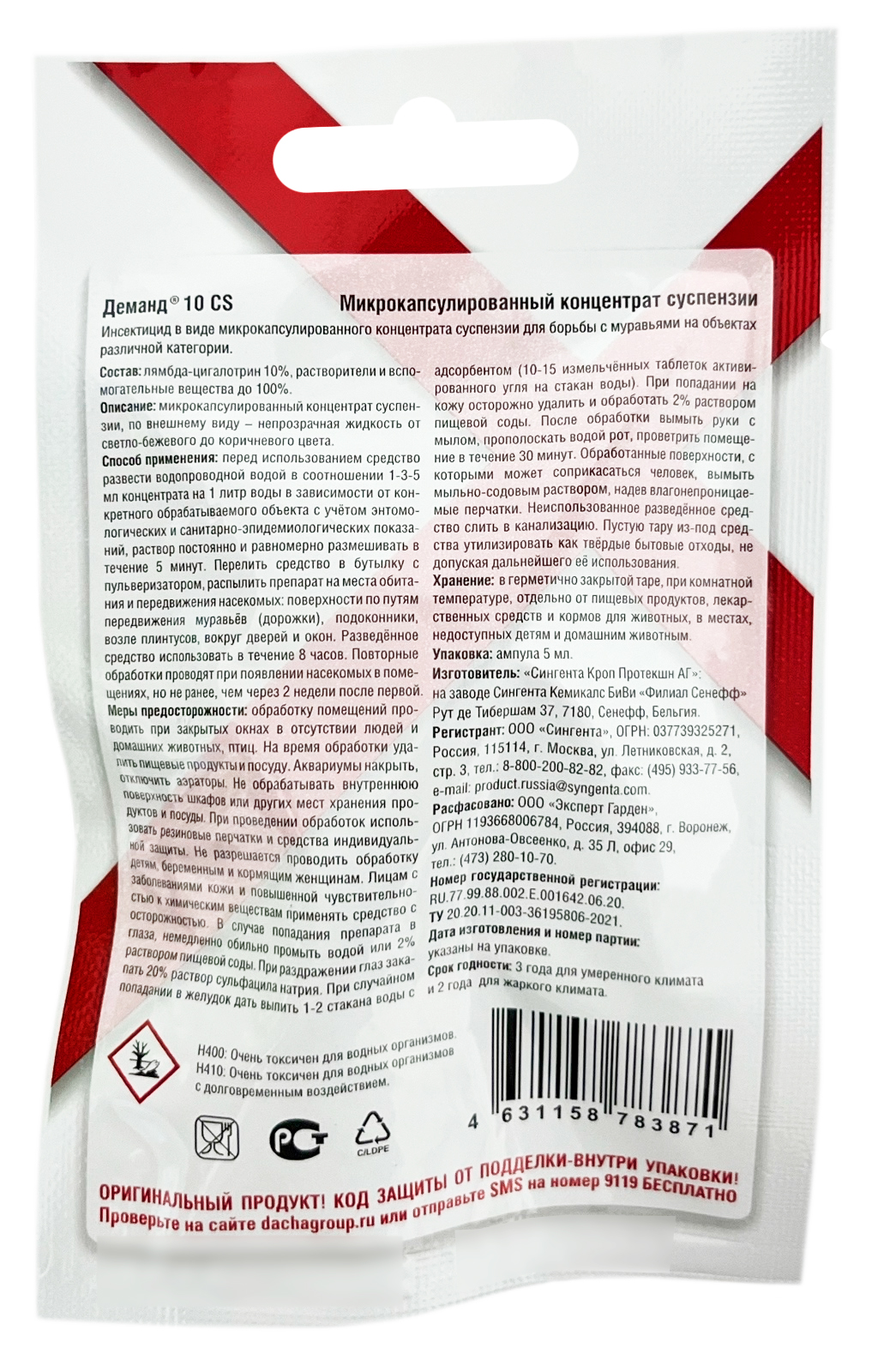 EXPERT HOME ДЕМАНД 10 CS 5млИнсектицид в виде микрокапсулированного концентрата суспензии для борьбы с муравьями на объектах различной категории.