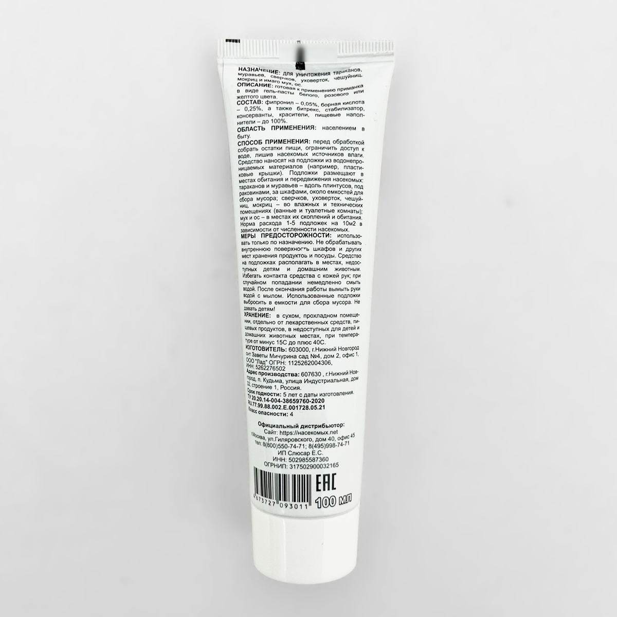 Состав: фипронил 0,05%, борная кислота 0,25%, битрекс, стабилизатор, консерванты, красители, пищевые наполнители до 100%.