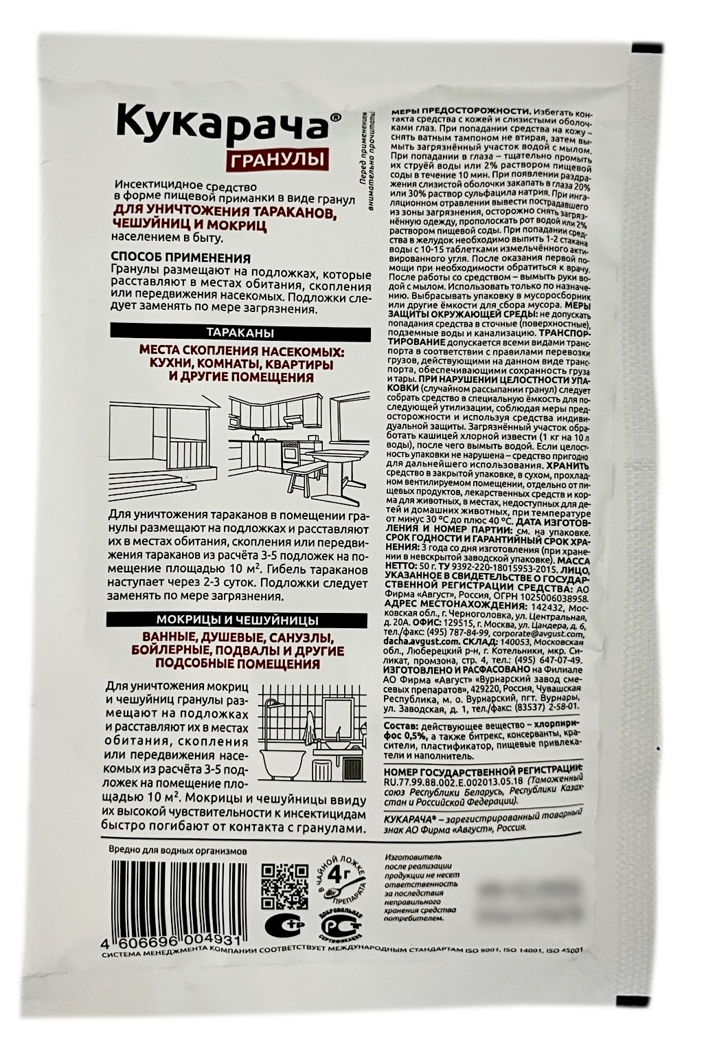 КУКАРАЧА 50г гранулыОт тараканов, чешуйниц и мокриц.