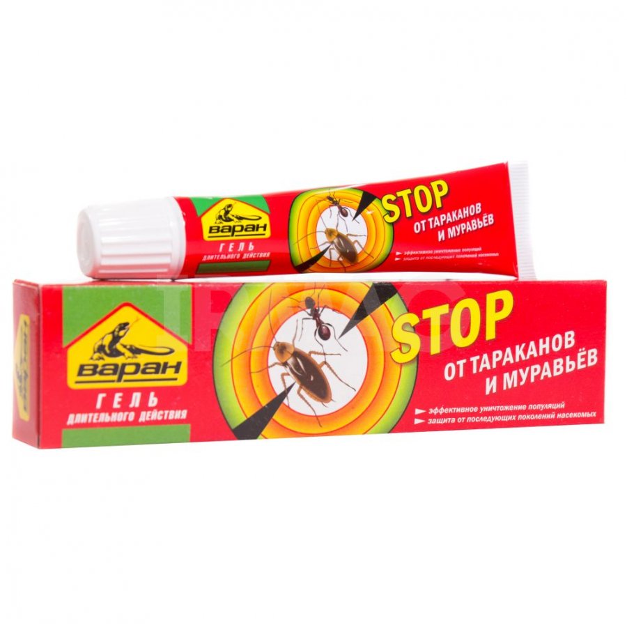 Гель Варан Stop от тараканов и муравьев эффективно уничтожает популяции и защищает от последующих поколений насекомых.Принцип действия: Благодаря уникальной формуле геля достигается необходимый эффект в борьбе с насекомыми, устойчивыми к обычным средствам.