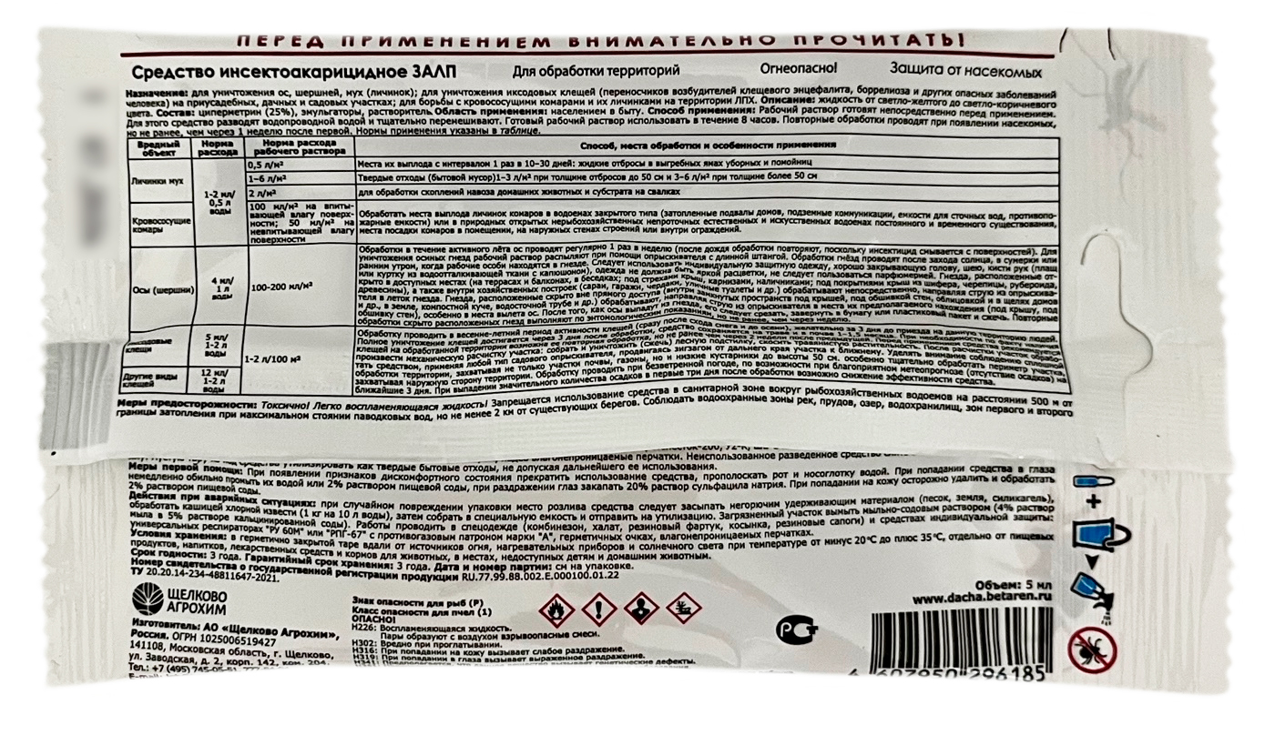 ЗАЛП 5мл ЩАЗащита от насекомых: клещей, комаров, ос, шершней, мух, личинок. Защита до 45 дней.