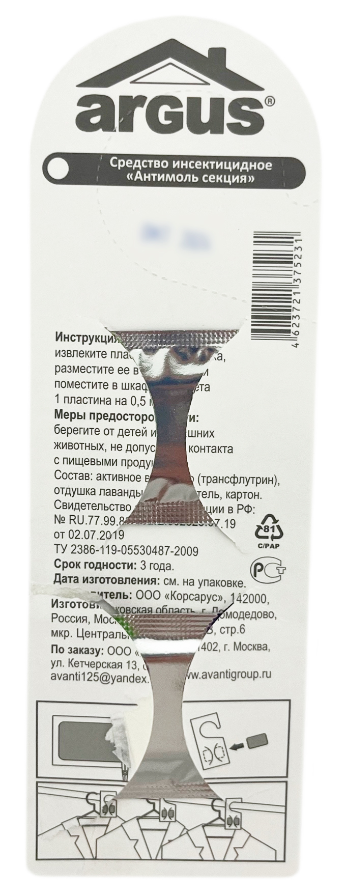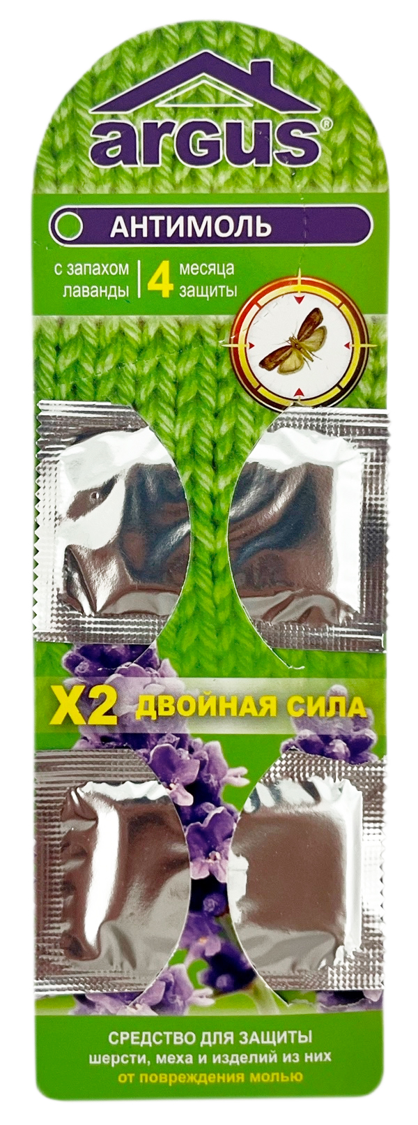 Аргус (Argus) 2-й крючок от моли 4 месяца защитыСредство Argus с запахом лаванды предназначено для защиты шерсти, меха и изделий из них от повреждения молью.