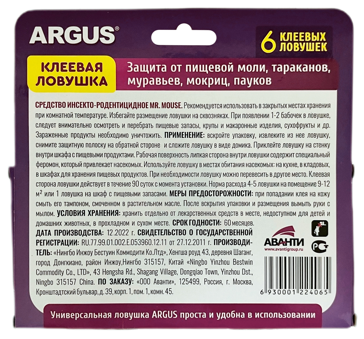 Антимоль ARGUS клеевая ловушка от пищевой моли 6шт