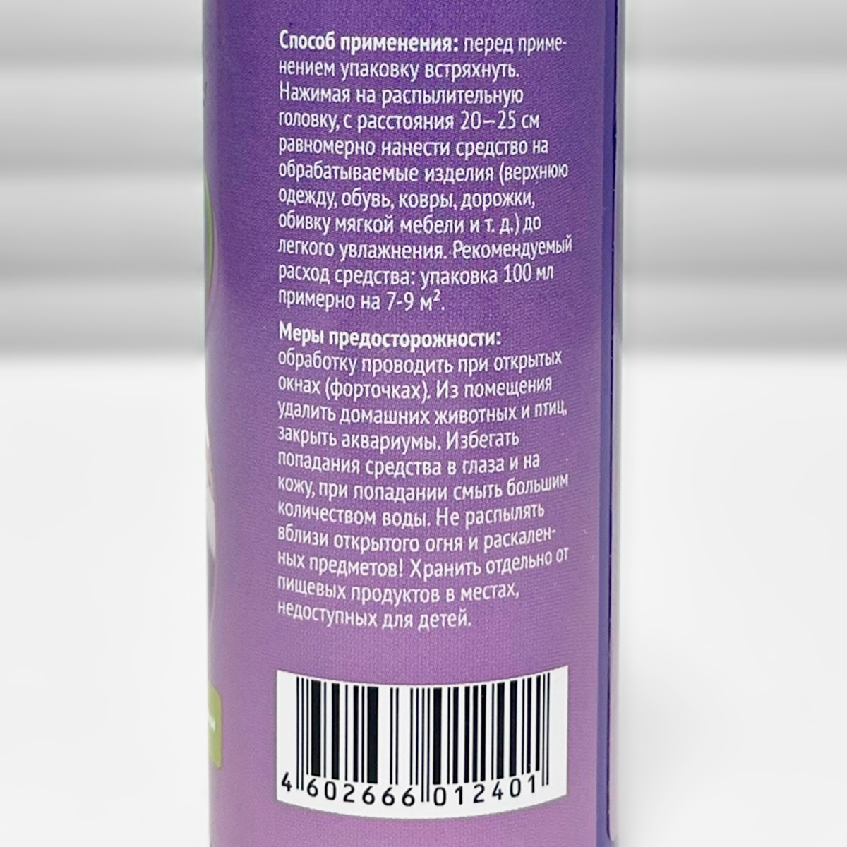 Состав: перметрин 0,4%, отдушка, спирт изопропиловый, вода, технологические добавки.