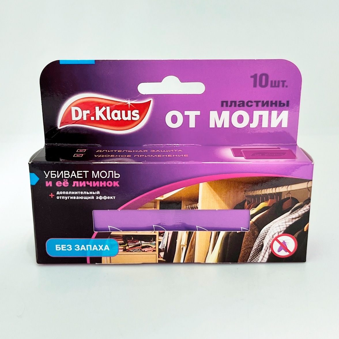 Dr. Klaus пластины от моли. 10шт.Убивает моль и её личинок + дополнительный отпугивающий эффект. БЕЗ ЗАПАХА!