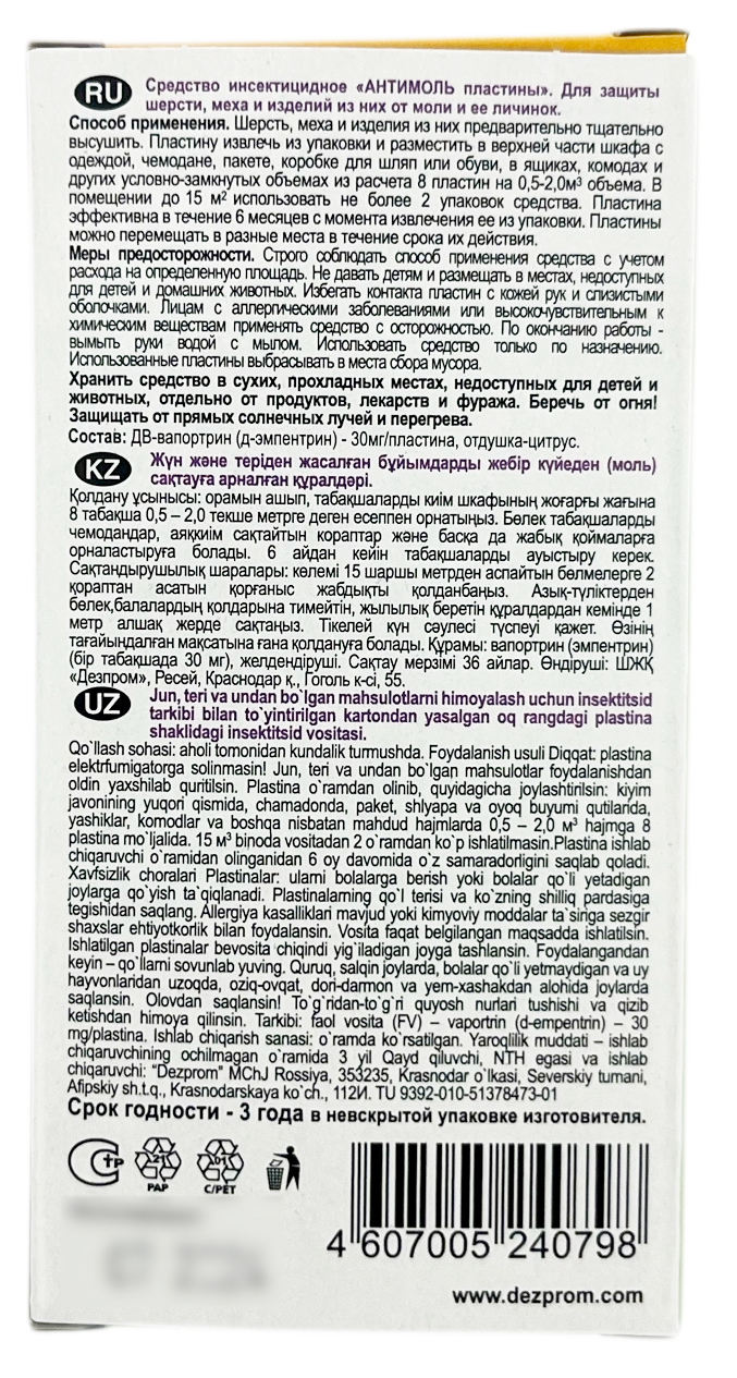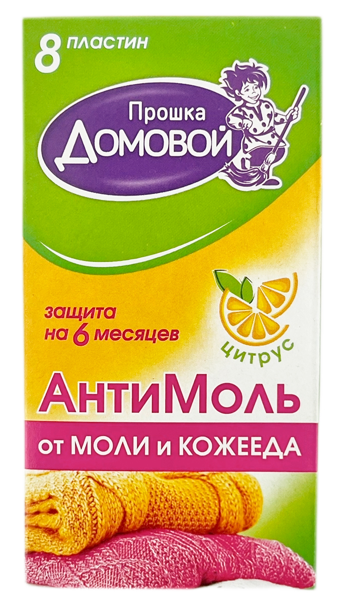 Прошка ДОМОВОЙ антимоль цитрусОт моли и кожееда. Защита на 6 месяыцев. 8 пластин.