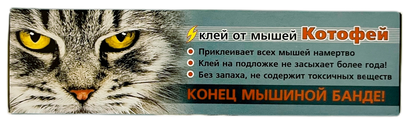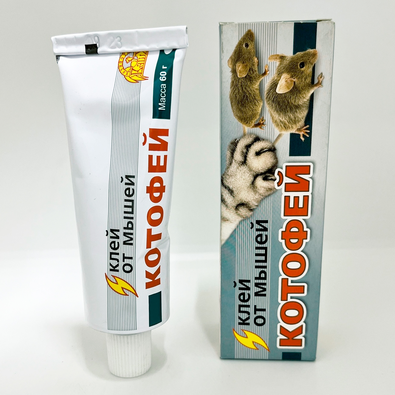 Клей Котофей 60г от мышейКлей «Котофей» предназначен для отлова мышей и мелких крыс, обладает замечательными клеящими свойствами, надежно фиксирует «влипших» грызунов. Не содержит токсичных веществ, не пахнет, не отпугивает грызунов запахом.
