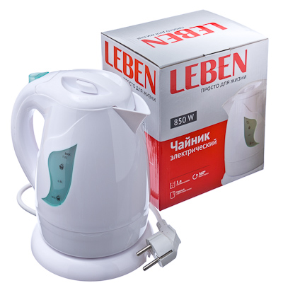 LEBEN Электрочайник скрытый нагр. элемент, пластик 1,0л. 850W