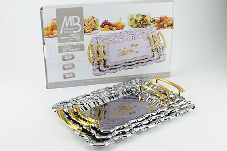 Набор подносов 3пр. метал. с рез/зол/руч 3676 SK