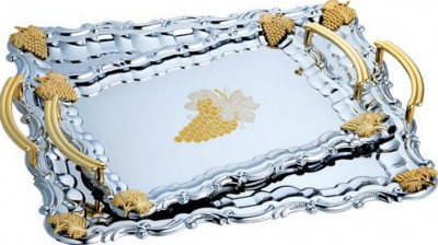 Поднос из нержавейки с ручками KH264 39,5*32,5см