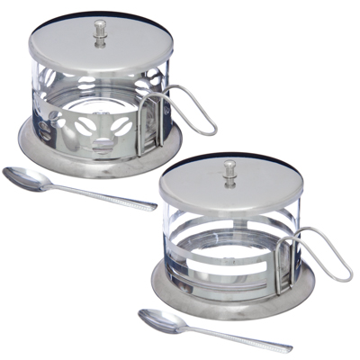 Сахарница с ложкой, нерж.сталь, 260мл, 2 дизайна