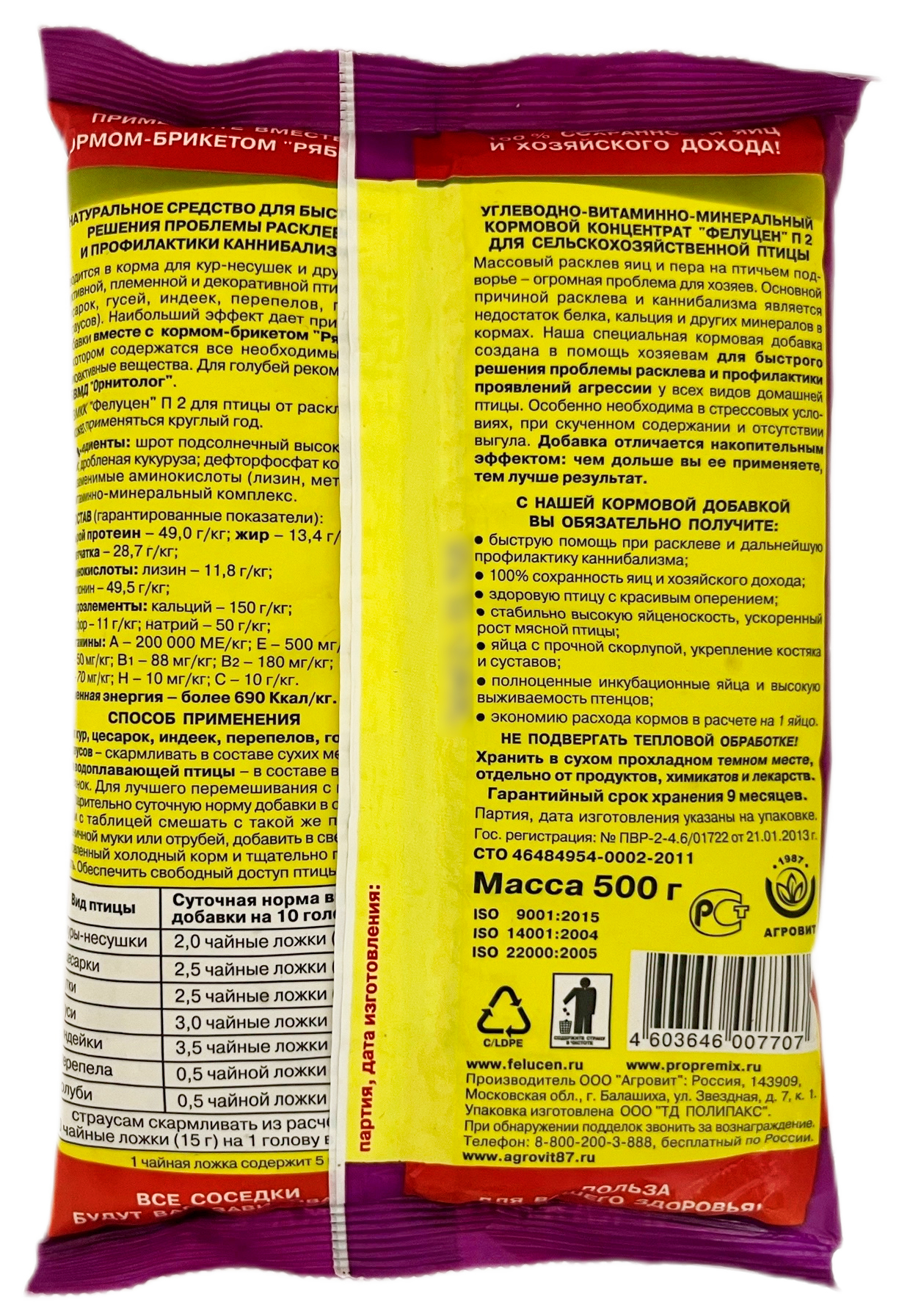 Специальная кормовая добавка создана в помощь хозяевам для быстрого решения проблемы расклева и профилактики проявлений агрессии у всех видов домашней птицы. Особенно необходима в стрессовых условиях, при скученном содержании и отсутствии выгула. Добавка отличается накопительным эффектом: чем дольше вы ее применяете, тем лучше результат.