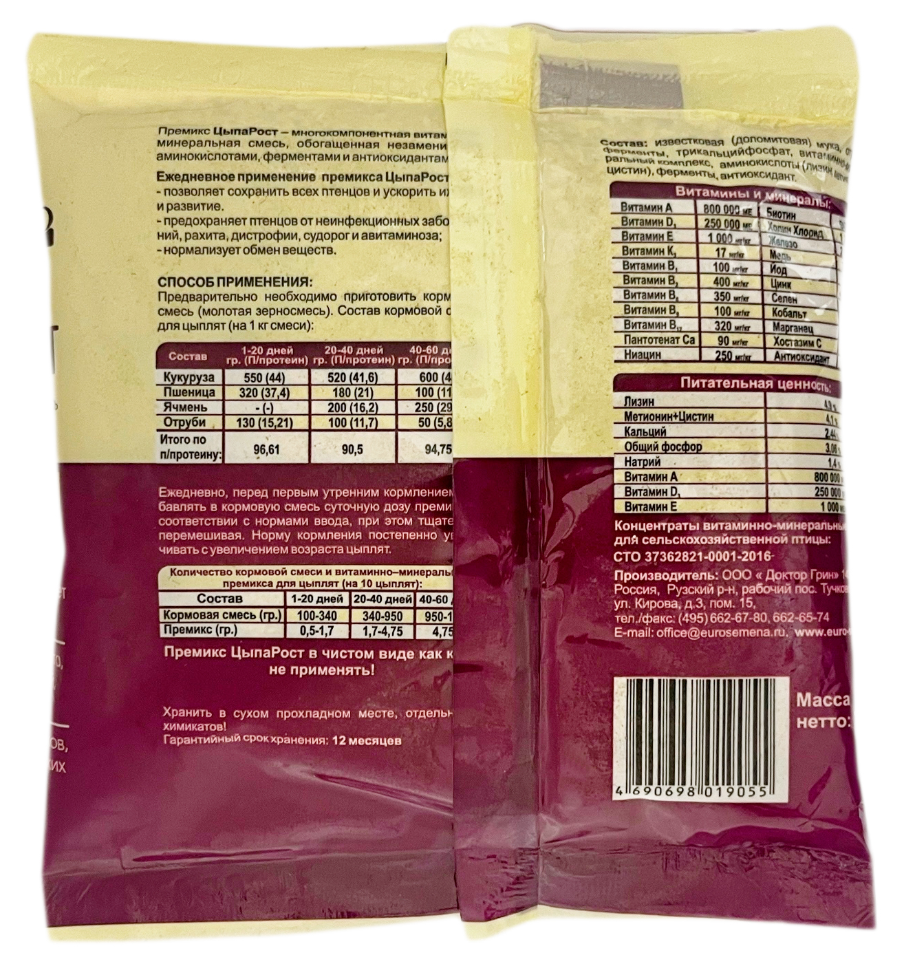 ЦыпаРост для цыплят, гусят, индюш 150гЗолотой амбар ЦыпаРост – многокомпонентная витаминно-минеральная смесь, обогащенная незаменимыми аминокислотами, ферментами и антиоксидантами для цыплят, утят, гусят, индюшат.