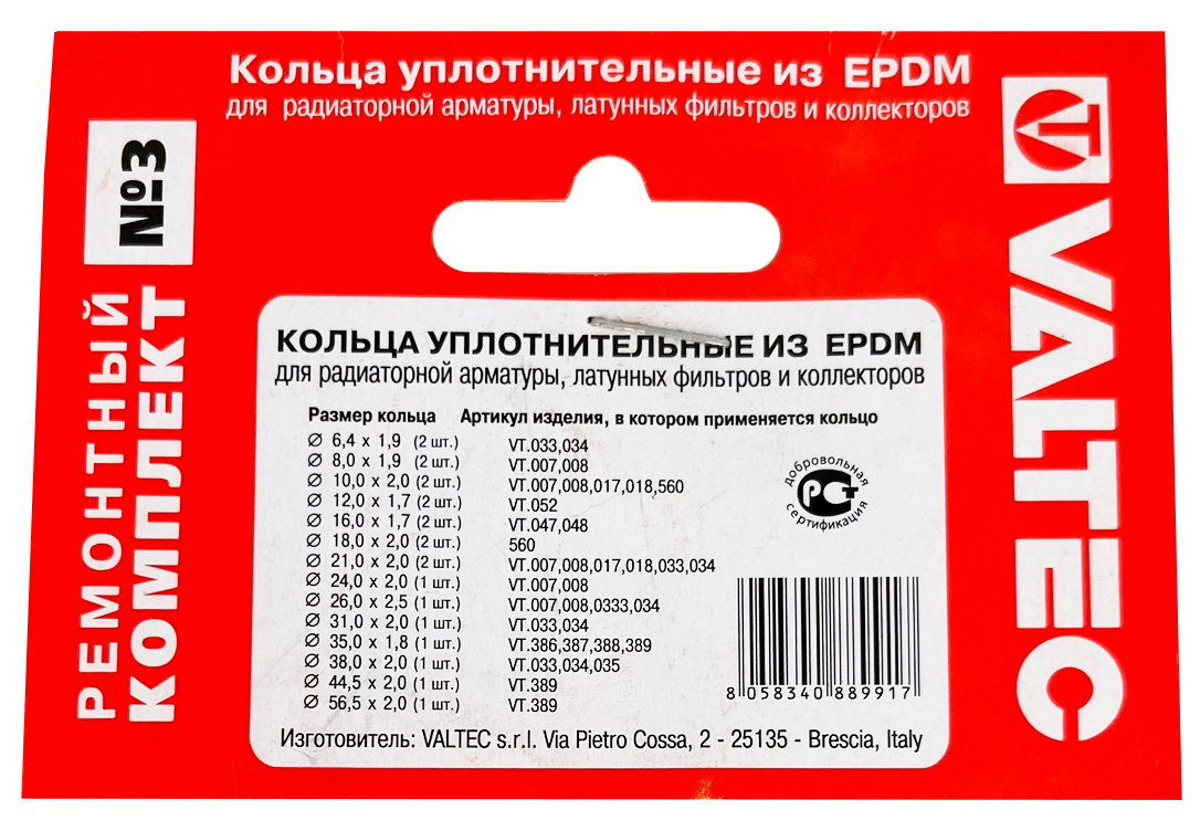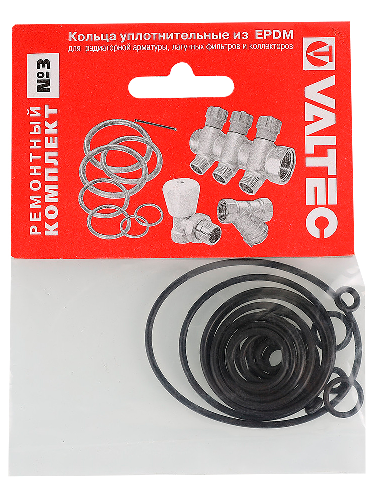 Набор прокладок Ремкомплект Valtec №3Набор уплотнительных колец из EPDM (ремонтный комплект) для радиаторной арматуры, латунных фильтров и коллекторов VALTEC. Содержимое набора пригодится в случае потери или повреждении штатных уплотнительных колец, а также при повторном монтаже перечисленных изделий.