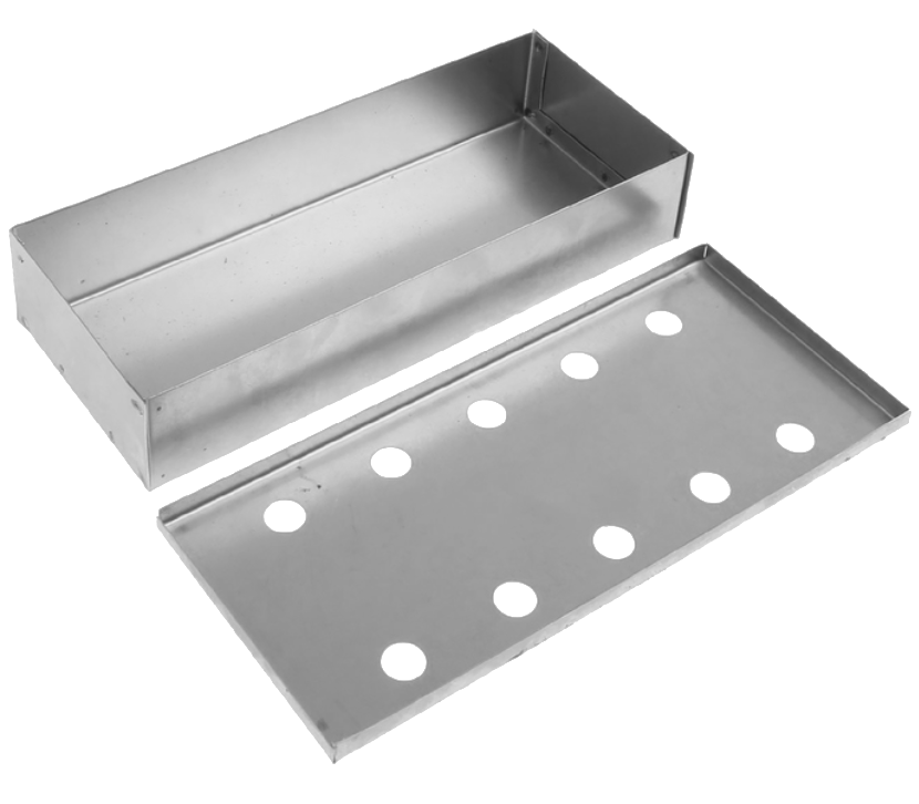 Размер: 24*10*4,5 см.Контейнер для щепы подходит для установки в мангале, гриле или барбекю. Такая коробочка поможет вам приготовить настоящий кулинарный шедевр с золотистой корочкой без специальных устройств. Наполните ёмкость щепой, поставьте на угли и приступайте к копчению.