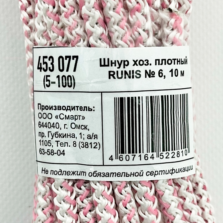 Шнур хозяйственный плотный №6, 10м, 5-100