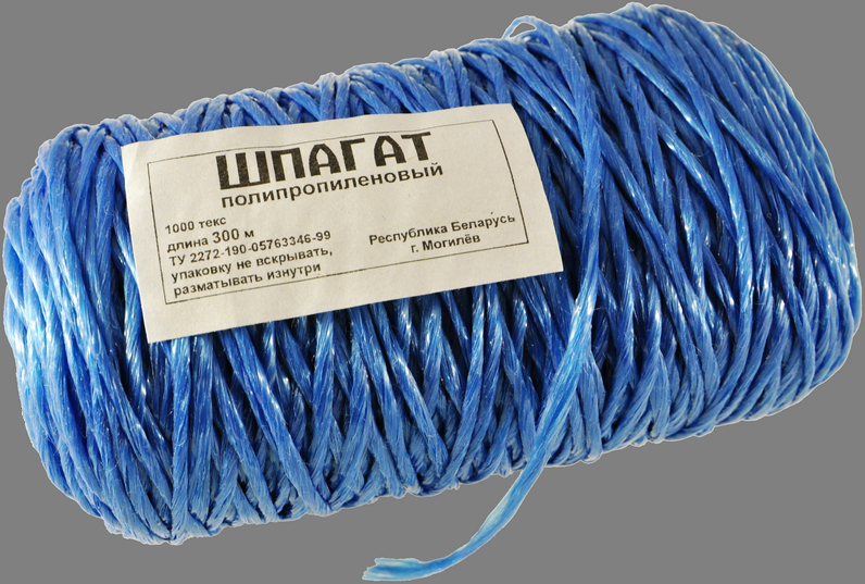 Шпагат полипропиленовый длиной 300 м, 1000 текс, в бобине. Цвет белый. Каждая бобина в термоусадочной пленке, снабжена этикеткой с описанием свойств товара и штрих-кодом.Характеристики