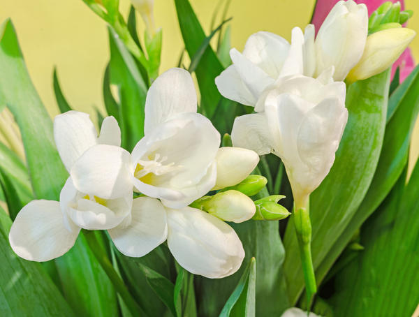 Сегодня мы хотим рассказать вам о необыкновенном растении - фрезии. Фрезия - очаровательный нежный цветок с тонким едва уловимым ароматом лета , свежести , ландыша , фруктов и чего-то неведомого , но желанного. Родина этого растения Южная Африка. Название этому цветку было дано ботаником и по совместительству никому неизвестным врачом из Германии Фридрихом Фризом. Он не пожалел для африканской находки своего имени, чем и прославился на весь мир. Сегодня этот удивительный цветок знают и любят цветоводы всего земного шара. Фрезия - на пике популярности и, похоже не собирается его покидать. Основным преимуществом выращивания фрезии является то, что можно выращивать цветы к Новому Году, 8 марта и другим значимым датам. Это будет зависеть от сроков высадки луковиц. Спешите приобрести в нашем магазине махровую фрезию. Она представлена в следующей цветовой гамме. Мы уверены , что это растение станет украшением Вашей коллекции.